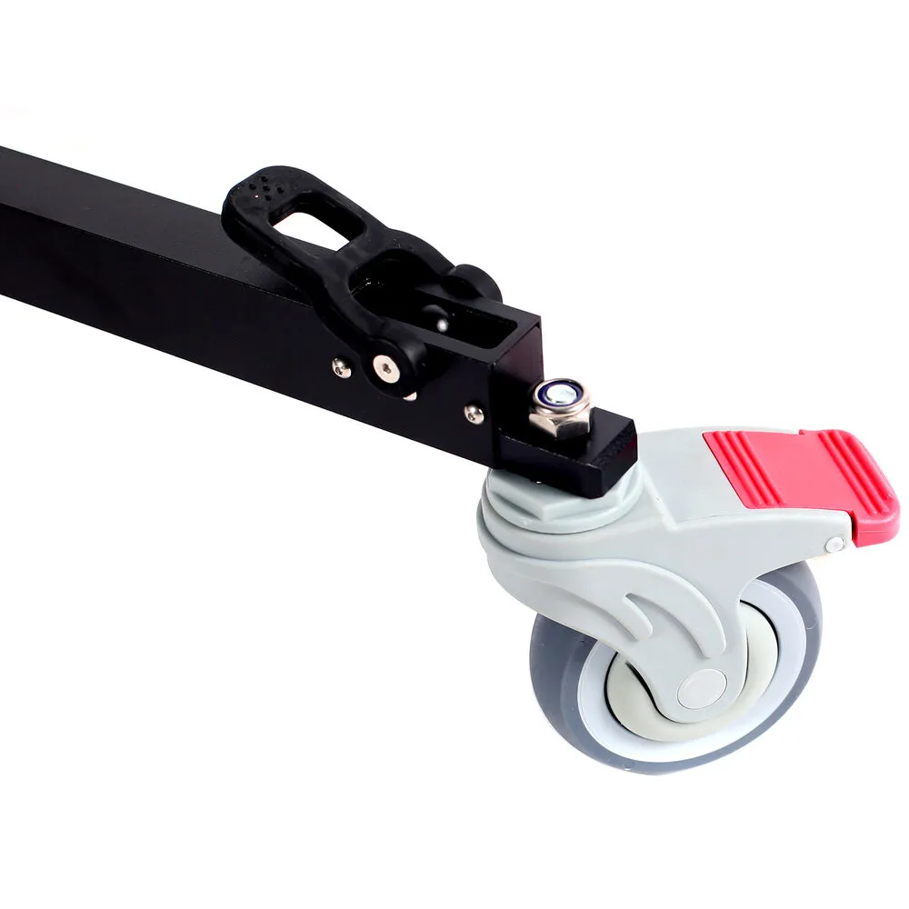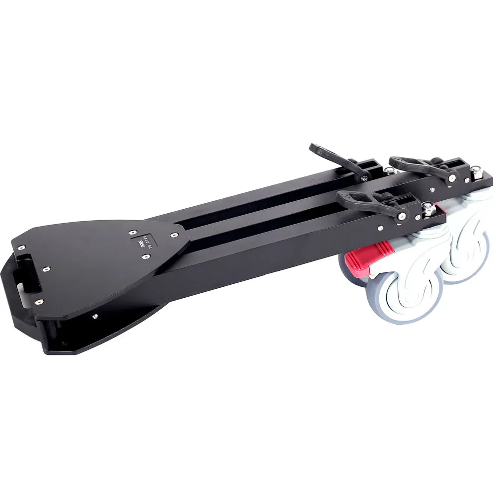 Прочная алюминиевая рама рассчитана на работу с тяжёлыми кинокамерами и навесным оборудованием общей массой до 100 кг. Несмотря на высокую несущую способность, тележка остаётся лёгкой и манёвренной, сохраняя плавность хода даже на неровных поверхностях.