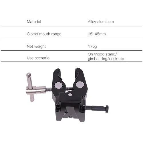 Фиксатор подходит для большинства камер c резьбовым отверстием от 15 до 45 мм. Вы можете использовать его с любым кронштейном маятникового противовеса, чтобы получить максимально стабильные и качественные кадры.