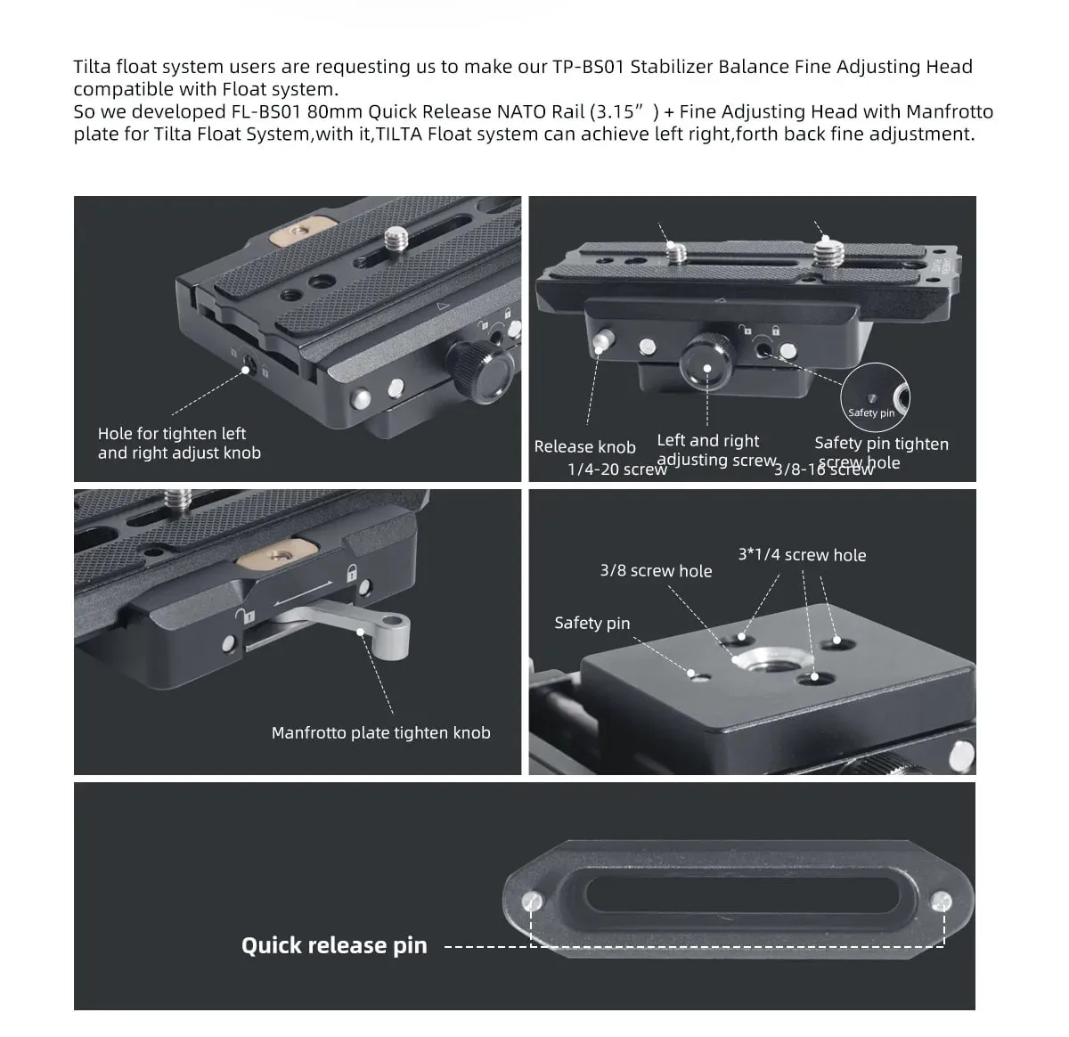 GIMBAL FL-BS01 - стабилизатор с пластиной Manfrotto и 80-миллиметровой рейкой НАТО для наклонного поплавка серии DF THANOS-PRO. Более никогда не бойтесь размывшихся или нечётких фотографий, и попрощайтесь с дрожанием при записи видео! Стабилизатор GIMBAL FL-BS01 станет вашим верным помощником, который обеспечит профессионально стабильные снимки в любых условиях.