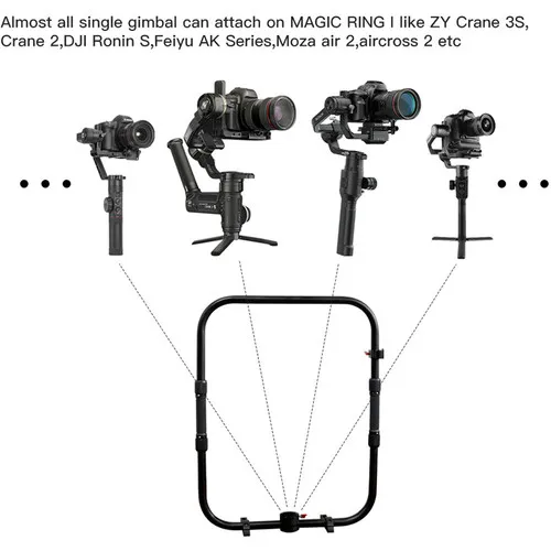 GIMBAL MAGIC RING I cовместим со всеми одноручными карданами, такими как Zhiyun CRANE 3S, DJI Ronin-S, MOZA Air 2 / AirCross 2 и портативными карданами серии Feiyu AK. Кольцо разработано с учетом широкой совместимости с различными устройствами.