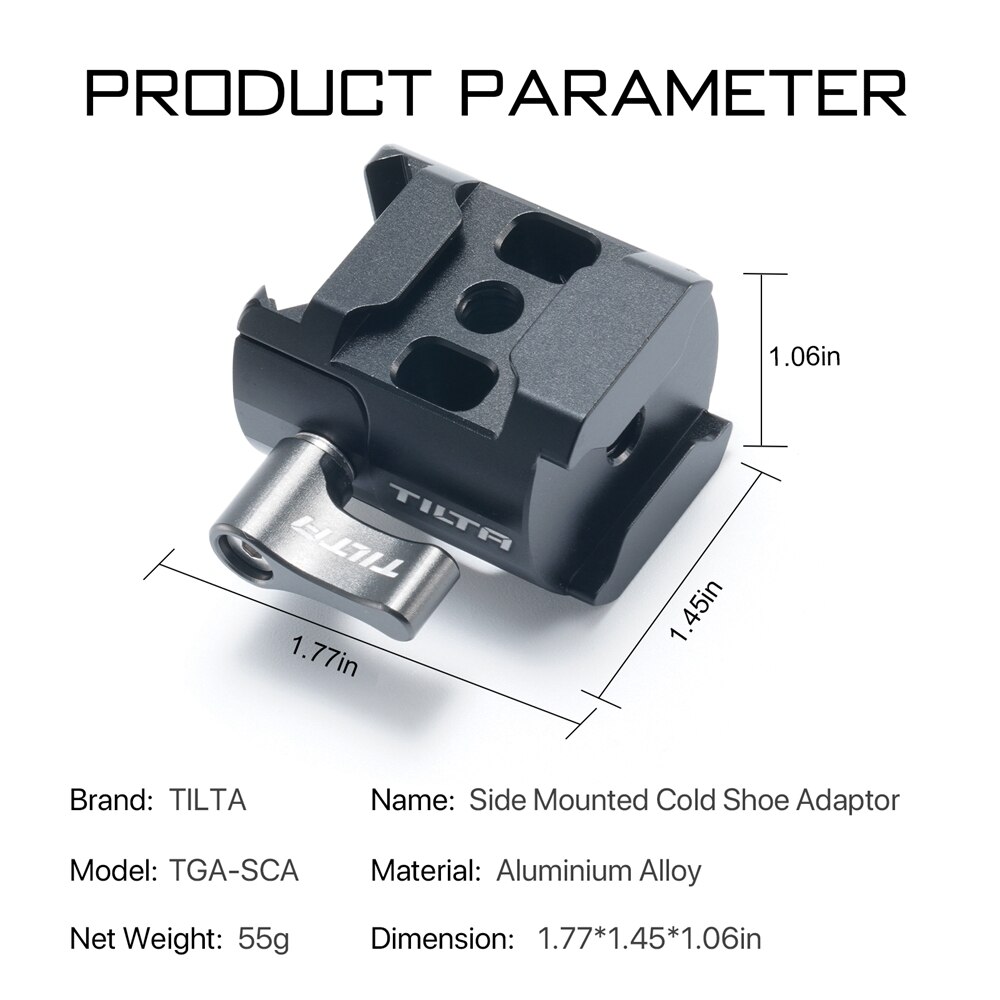 Боковой вынос башмака Tilta TGA-SCA специально разработан для использования со стабилизатором DJI RS 2. Он быстро и просто устанавливается на боковую его часть, предоставляя возможность установить дополнительное оборудование. Аксессуар выполнен из высококачественного алюминиевого сплава, что обеспечивает прочность и надежность конструкции. Также аксессуар обладает легким весом и компактными размерами, что не создает дополнительной нагрузки на стабилизатор и позволяет легко транспортировать его.