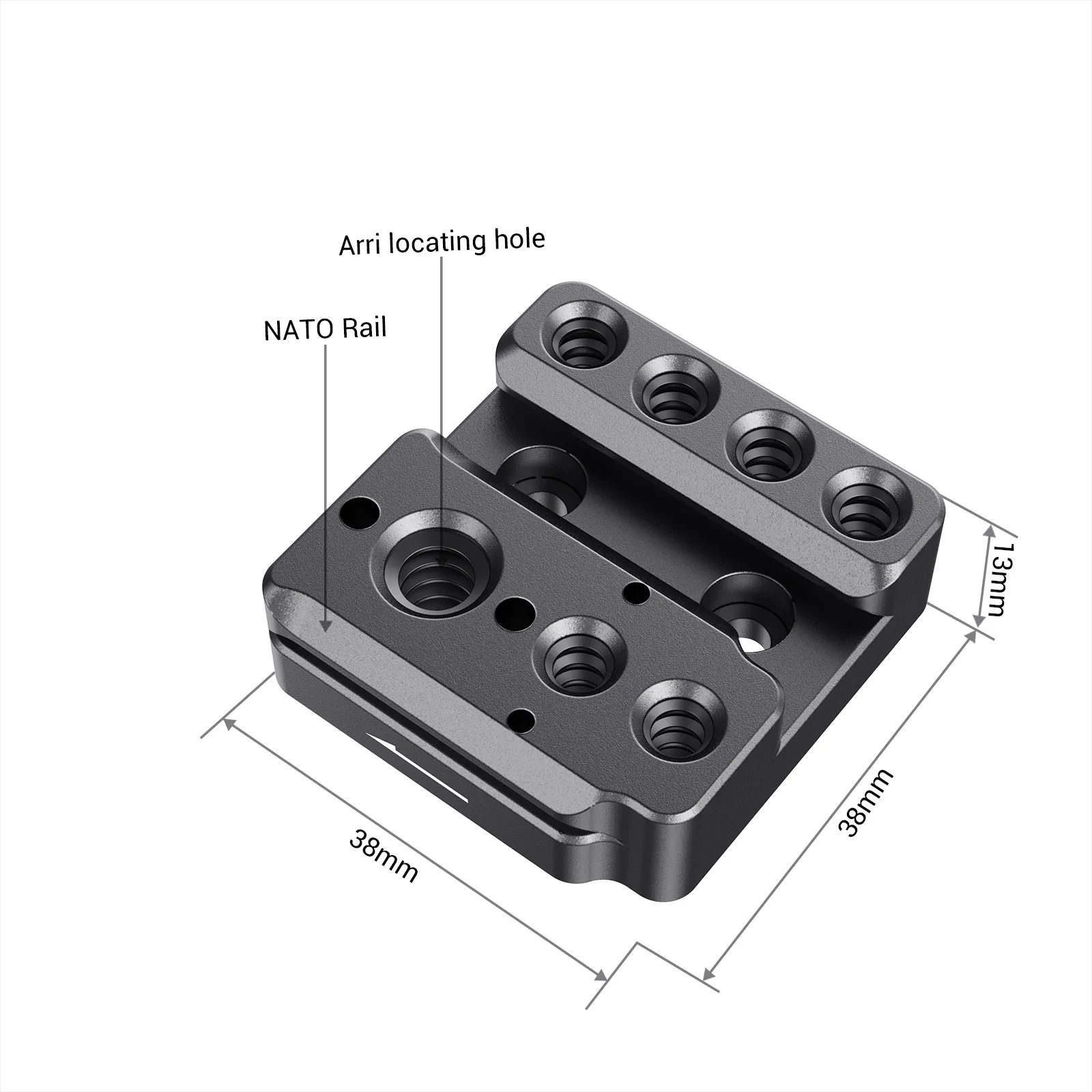 Основной особенностью этого крепления являются интегрированные резьбовые отверстия, включая стандартные размеры 1/4" и 3/8" ARRI. Также предусмотрено крепление рельсового типа NATO, что дополнительно расширяет спектр совместимых аксессуаров.