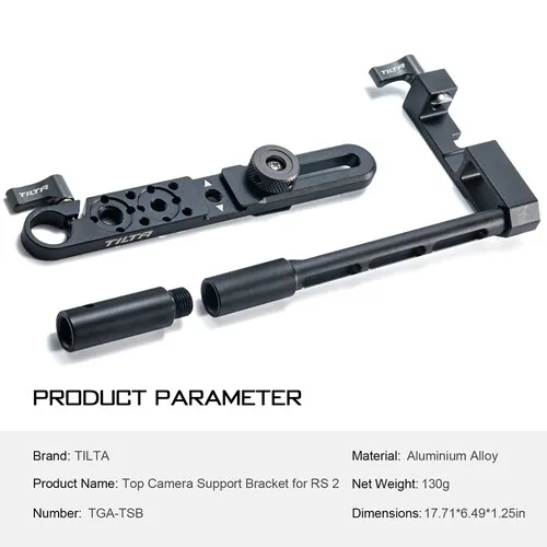 Кронштейн Tilta TGA-TSB для верхней камеры DJI Ronin представляет собой специальное монтажное устройство, позволяющее устанавливать дополнительное оборудование, например, монитор, микрофон или другие аксессуары, на верхнюю часть стабилизатора.