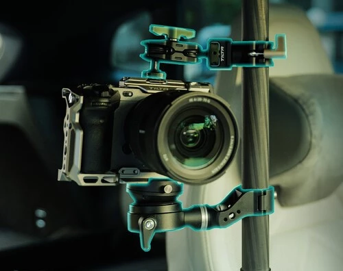 Компактное решение для монтажа камеры в труднодоступных местах. Ключевые преимущества: карбоновая конструкция длиной 50 см, сквозные порты USB-C мощностью 100 Вт для удобной прокладки кабелей и универсальные опорные ножки, позволяющие фиксировать стойку на автомобиле, внутри салона или в других стеснённых условиях съёмки.
