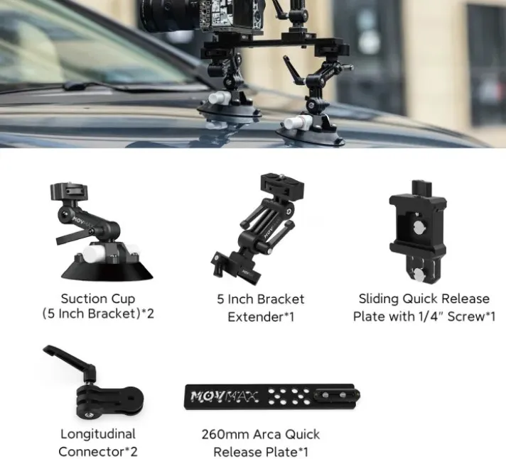 С помощью комплекта Movmax Mamba Junior Car Mounting System можно добиться плавного и динамичного изображения движения автомобиля при безопасном монтаже. В комплект входит :