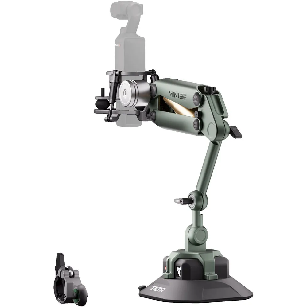 Набор оптимизирован для DJI Osmo Pocket 3, DJI Action 3/4 и Insta360 X3/X4. Также подходит для других камер и камерных клеток (включая линейку Tilta Khronos для смартфонов), если общий вес не превышает 1,32 кг. Для расширенных конфигураций можно докупить отдельные элементы, например, ручку или дополнительную присоску. Конструкция амортизирующей ручки вдохновлена полноразмерной системой Tilta Hydra Alien, но адаптирована под лёгкие камеры. Внутри используется автомобильное гидравлическое масло, которое можно заменить при необходимости.