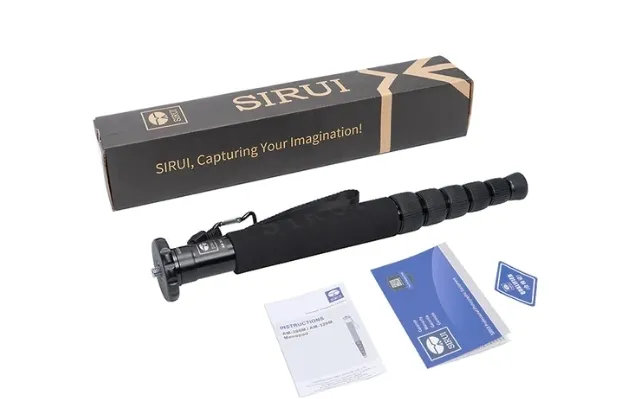 Содержимое коробки: Монопод SIRUI AM-306M из алюминия, ремешок для руки, мини-компас и карабин