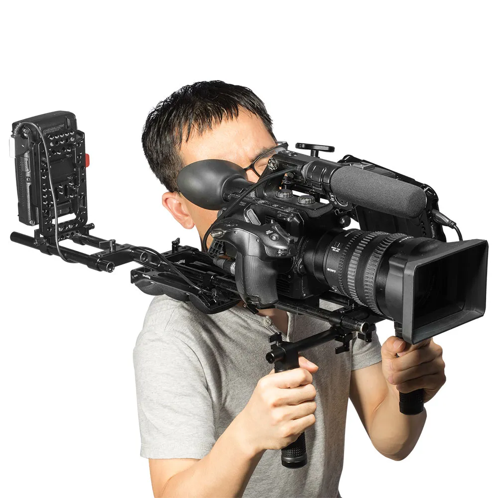 Данный комплект плечевого крепления обладает универсальной совместимостью, охватывая как большие, так и компактные камеры. В его основе лежит инновационный подъемник формы "Z", предназначенный для соединения камеры с плечевым упором 2077. Этот подъемник стремится к расширению функциональности, предоставляя дополнительное пространство справа на плече, что в конечном итоге обеспечивает более комфортное и эргономичное положение для съемки.