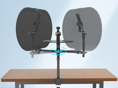 Базовая струбцина фиксирует систему на краю стола, совместима со стандартными штативами и устанавливается на ровную поверхность. Сборка занимает несколько минут и не требует дополнительного инструмента. Компактные размеры узлов не перегружают рабочее пространство и позволяют легко интегрировать платформу в существующие съемочные схемы.