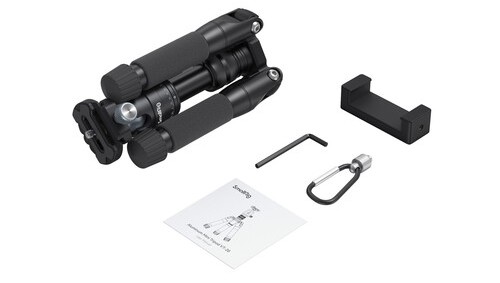Мини-штатив SmallRig VT-20 с шаровой головкой идеально подходит для компактных DSLR, беззеркальных камер, смартфонов, экшн-камер и других устройств. Его пятисекционные ножки из алюминиевого сплава и система быстрого зажима позволяют выдвинуть штатив до высоты 52 см и выдерживать нагрузку до 6 кг. Обратно-складная конструкция ножек обеспечивает компактную длину в сложенном состоянии — всего 18 см, а вес самого штатива составляет всего 0,7 кг. Выдвижная центральная колонна добавляет дополнительную высоту, а в комплекте предусмотрен грузовой крюк-карабин для повышения устойчивости. Для крепления предусмотрена быстросъёмная пластина Arca-type.