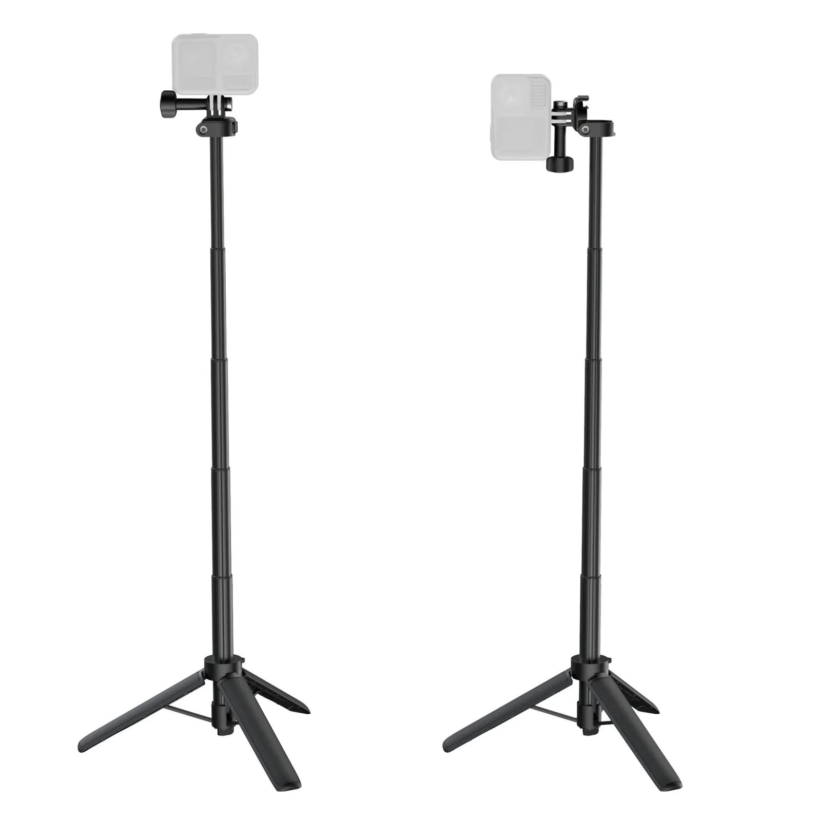 Трипод выдерживает нагрузку до 0,5 кг, что достаточно для большинства компактных экшн-камер, включая серии GoPro HERO и DJI Action. Стандартное трёхзубчатое крепление обеспечивает надёжную фиксацию без люфтов. Встроенная кнопка на креплении позволяет одним движением повернуть камеру на 90°.