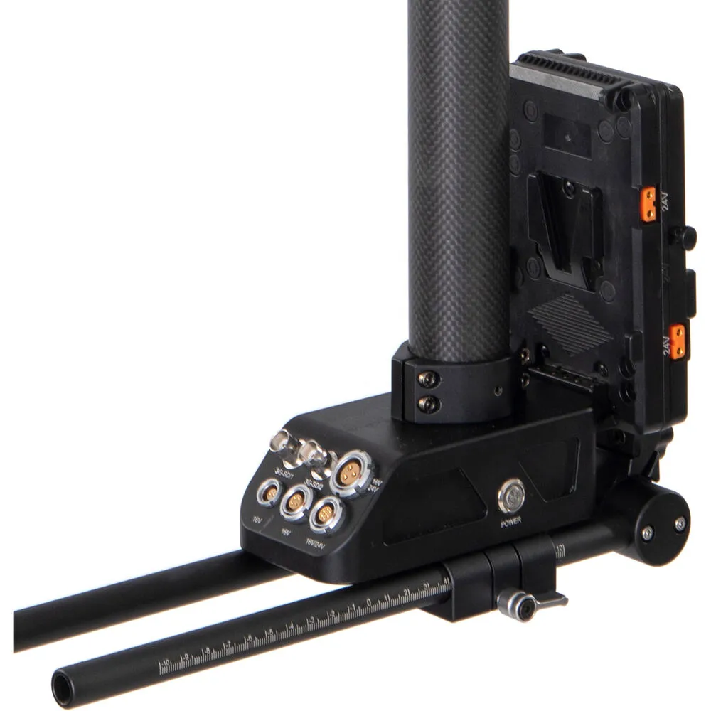 Сквозные разъёмы 3G-SDI передают видеосигнал на внешний монитор без дополнительных кабелей, проходящих мимо оператора. Площадки для аккумуляторов V-mount и выходы D-Tap (16 В и 24 В) обеспечивают питание камеры и аксессуаров напрямую со стойки. Это исключает запутывание проводов и позволяет работать автономно в течение всего съёмочного дня без замены батарей.