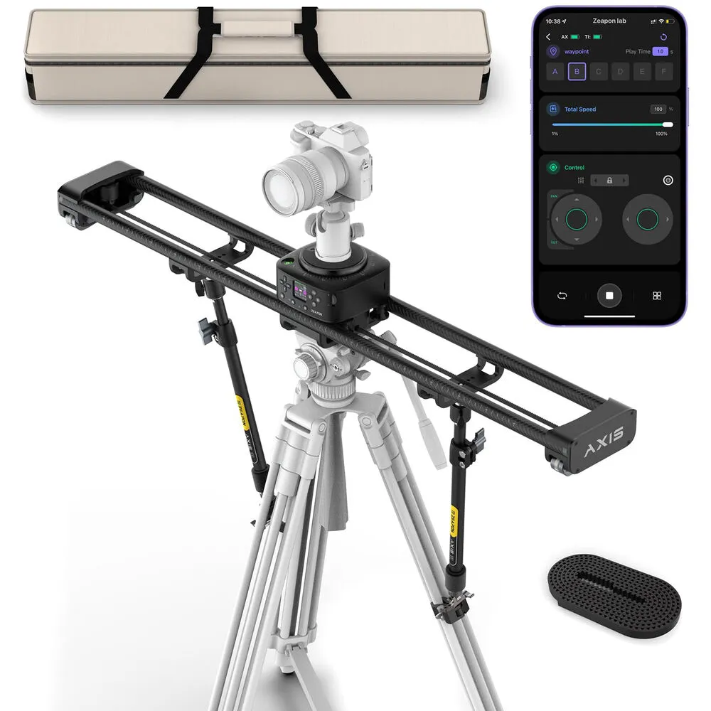 Слайдер Zeapon AXIS 100 представляет собой новейшее решение для профессиональной видеосъемки. Благодаря карбоновой конструкции, он сочетает в себе легкость и прочность, что позволяет использовать его в любых условиях. Моторизованная каретка обеспечивает плавное движение камеры по двум осям, что делает этот слайдер идеальным для создания панорамных и трекинговых съемок без искажений. Встроенный дисплей облегчает управление устройством, исключая необходимость в дополнительных приложениях для контроля движений.