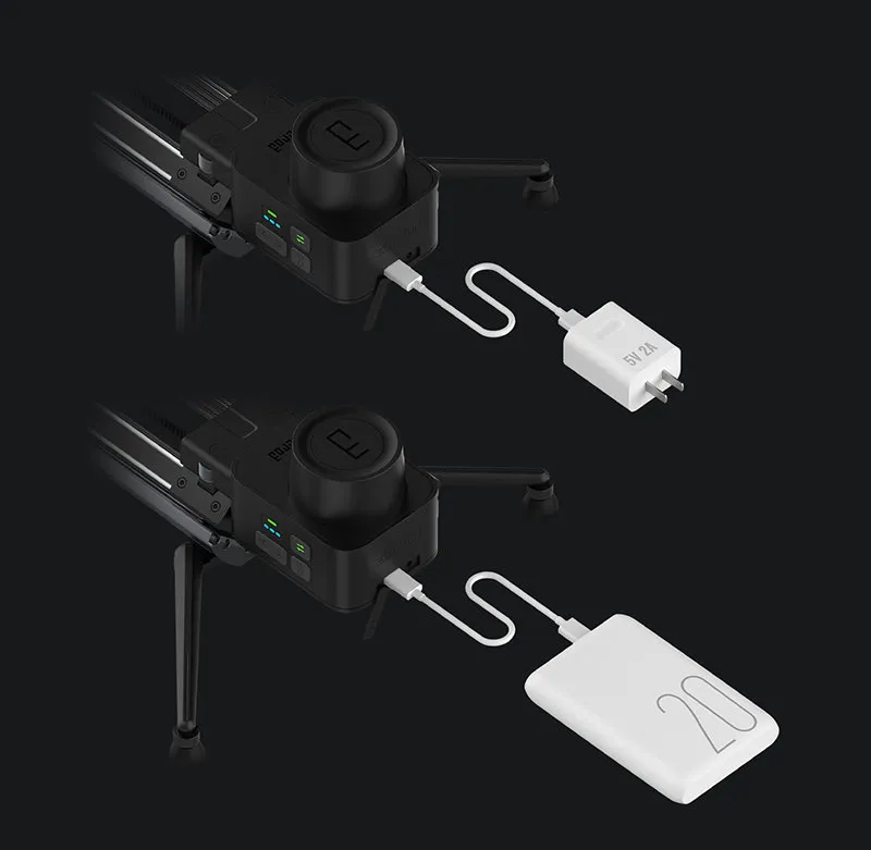 Мотор можно зарядить при помощи Type-C порта через сетевой адаптер 5В/2А или внешний аккумулятор. Таким образом, Micro3 может быть запитан как в студии, так и на природе.