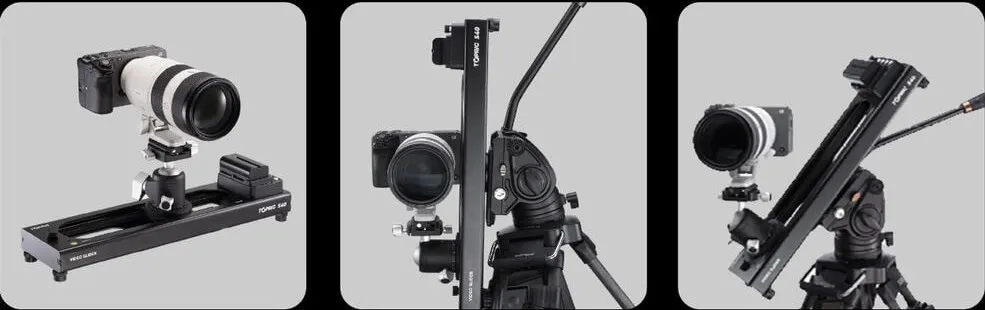 Бесщеточный двигатель обеспечивает тихую и рывковую работу с технологией Soft Start/Stop, исключающей резкие ускорения. Пользователь может задавать точки A/B, регулировать скорость, направление и выбирать между режимами: линейный проход, панорама, циклическое движение или замедленная съёмка. Помимо встроенных кнопок, слайдер поддерживает дистанционное управление через бесплатное приложение по Bluetooth для iOS и Android (настройка параметров и контроль процесса с телефона). Система совместима с большинством камер, от беззеркальных до кинематографических, при условии соблюдения лимита нагрузки.Мобильность и питание, крепление и универсальность