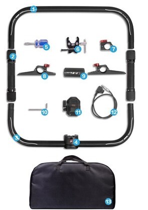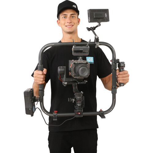 Лёгкая алюминиевая конструкция сочетает прочность и мобильность. Две резиновые рукоятки обеспечивают надёжный хват двумя руками, минимизируя дрожание камеры даже при длительных съёмках. Съёмные опорные ножки позволяют временно фиксировать конструкцию на горизонтальной поверхности между дублями, сохраняя оборудование в готовности к работе. Крепления стандарта Arri Rosette упрощают интеграцию со студийными осветителями, мэджик арм и другим оборудованием. Мягкий чехол в комплекте защищает компоненты от повреждений при транспортировке.