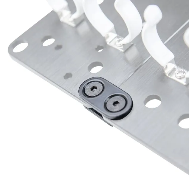 Пластины используются для жесткого соединения двух монтажных площадок, что позволяет создавать более сложные конфигурации оборудования. В комплект входят два монтажных винта для надежной фиксации. Благодаря легкому алюминиевому сплаву и компактным размерам, зажимы не добавляют лишнего веса и удобны в транспортировке.