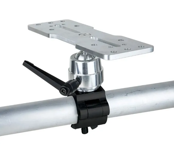 - Высокопрочный алюминиевый зажим предназначен для фиксации на трубе диаметром 2 дюйма (48-51 мм) и обеспечивает максимальную гибкость при перемещении установки под разными углами.