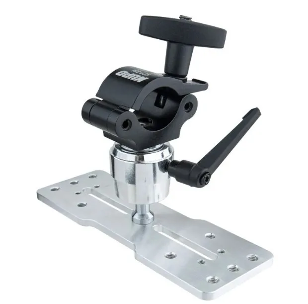 Kupo KCP-654 это соединительная площадка состоящая из прочного стального шарнира с монтажной пластиной для камеры и алюминиевого зажимом для труб диаметром 2 дюйма (48-51 мм). Она обеспечивает отличное решение для быстрой и удобной установки видеокамеры на автомобиль. Монтажная пластина оснащена стандартным рисунком отверстий с резьбовыми отверстиями и пазами, что позволяет напрямую устанавливать как скользящую пластину "ласточкин хвост", так и саму камеру. Храповая ручка в сочетании с шарнирной головкой обеспечивает максимальную возможность точной настройки камеры в любом желаемом положении.