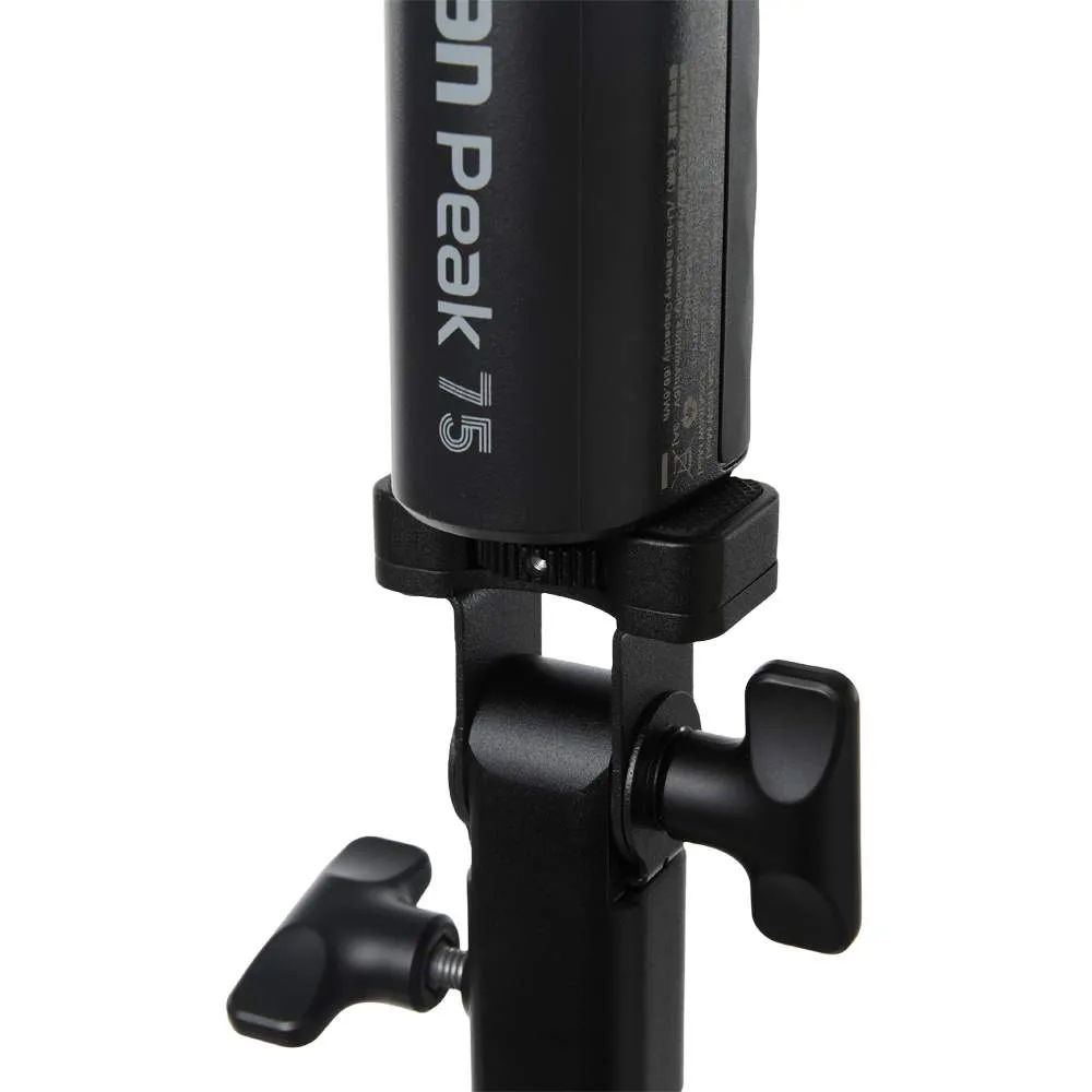 Сепень защиты IP54 обеспечивает устойчивость к пыли и брызгам. Встроенное штативное гнездо 1/4"-20 позволяет крепить Peak 75 напрямую на штативы или другое оборудование. В комплекте идет регулируемый адаптер к Baby Pin, который дает возможность точно настроить угол наклона и сохранить баланс даже в сложных сетапах. Силиконовая рукоятка обеспечивает надежный хват.