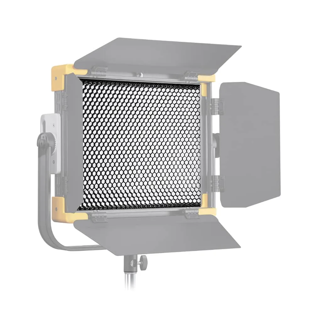 Сотовая насадка сужает широкий световой поток, формируемый светодиодной панелью, и увеличивает контрастность свето-теневого рисунка, давая «жесткий свет».