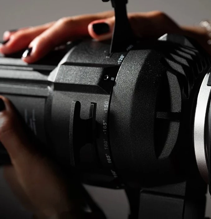Идеальна для съёмок, где важна динамика света: постепенное расширение пятна при приближении камеры к объекту, точечная подсветка деталей в интерьере, создание эффекта прожектора в портретной работе. Минимизирует необходимость в дополнительных флагах или барндверах при работе в ограниченном пространстве, достаточно повернуть кольцо диафрагмы.