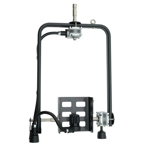 - Плавное изменение угла наклона: Регулировка поворота и наклона осуществляется путем зацепления чашечек коромысла с цветовой маркировкой снизу длинным стержнем. Крепление с приводом позволяет плавно и точно регулировать угол наклона осветителя, что позволяет создавать различные эффекты освещения и достигать нужного равномерного или направленного освещения.