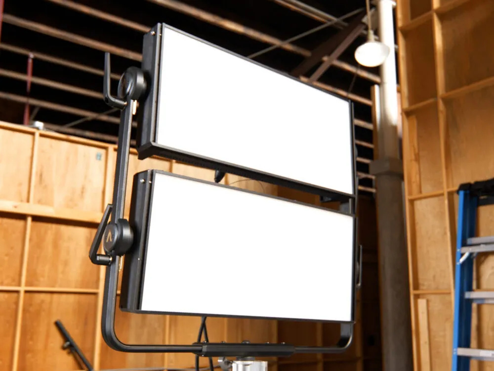 - Экономия пространства: Вертикальная установка двух осветителей экономит место на съемочной площадке, что особенно важно для быстрых съемок и длительных инсталляций.