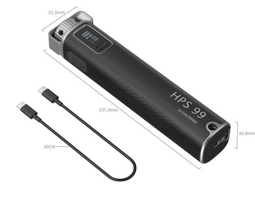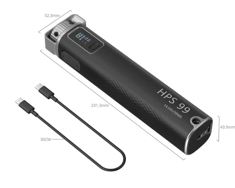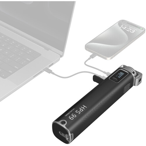 Заряжайте совместимые устройства с помощью портативной аккумуляторной ручки SmallRig HPS99. Емкость батареи составляет 27 200 мА*ч, в ней установлено два порта USB-C: один обеспечивает зарядку устройств до 100 Вт, второй — до 65 Вт. Оба порта также могут использоваться для зарядки самой ручки, что занимает около двух часов. Для крепления на штатив или другое оборудование предусмотрены резьба 1/4"-20 и соответствующее гнездо.