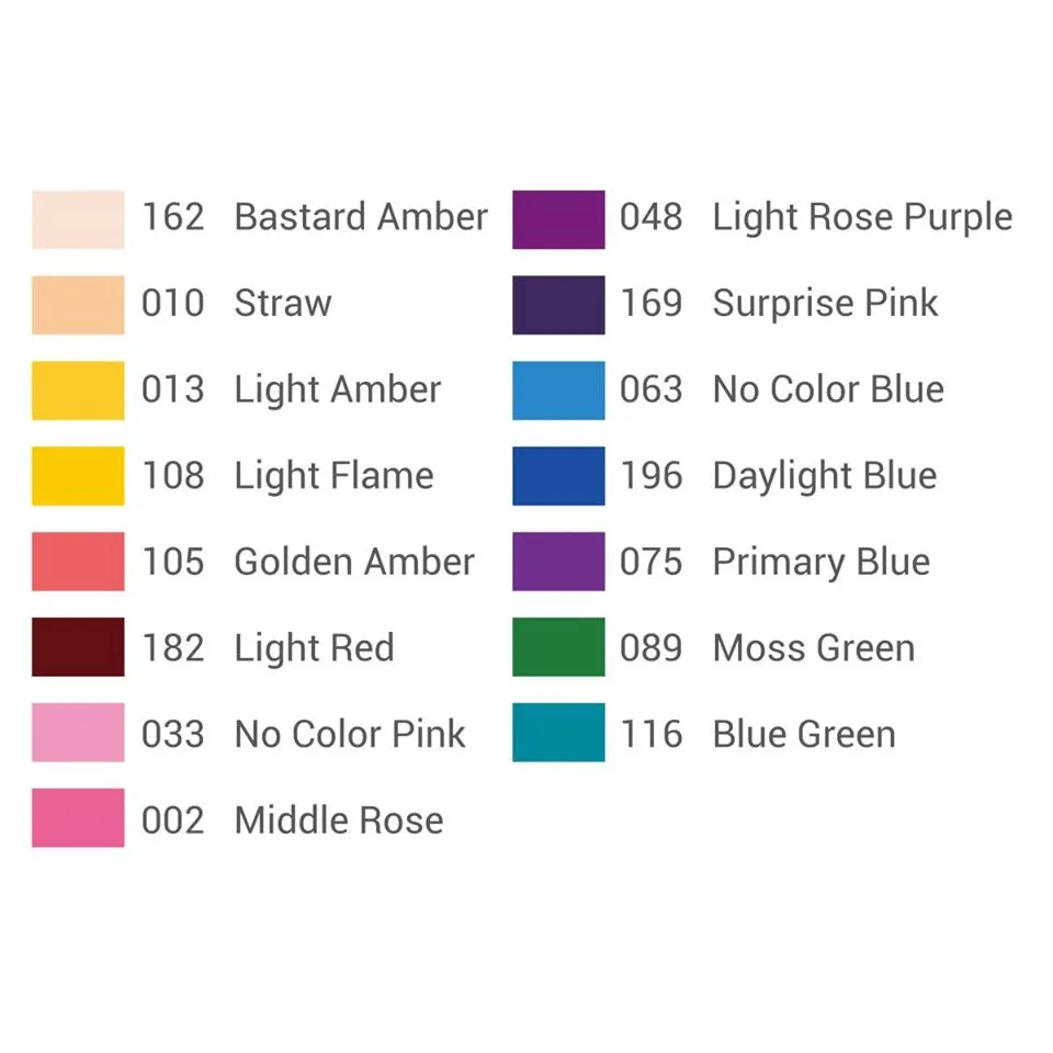 В набор входит 30 фильтров: по 2 фильтра 15 цветов.