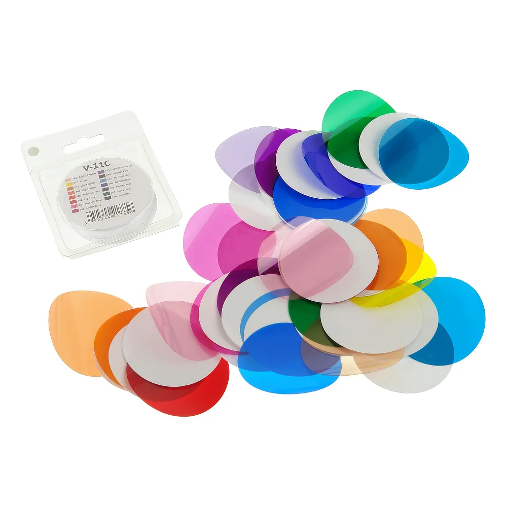 Godox V-11C – набор цветных гелевых "фолиевых" светофильтров для коррекции цветовой температуры, изменения контрастности, яркости и цветового решения при съемке различных объектов.