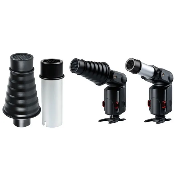 Насадки Godox AD-S9 устанавливаются на вспышки Godox Witstro AD180, AD200 или AD360II. Позволяют ограничить и сфокусировать поток света от вспышки до круглого светового пятна с мягкими краями, размер которого уменьшается по мере приближения к объекту съемки. Подходят для создания световых акцентов на объекте предметной съемки, а также, например, для подсветки волос модели в портретной съемке.Комплект состоит из двух насадок: конической и цилиндрической. В комплект входят две съемные сотовые насадки – для создания более «жесткого» света.
