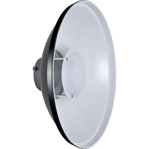 Портретная тарелка Godox BDR-W550 с белым внутренним покрытием, Bowens, диаметр 550 мм. Beauty Dish (портретная тарелка) — модификатор для студийных источников света, применяемый в Fashion и портретной съемке. Свет излучаемый вспышкой отражается от дефлектора, расположенного по центру, и направляется на внутреннюю белую поверхность тарелки. В результате тарелка формирует круглый пучок мягкого света с выделенным краем четкости (идеально для подсветки волос и макияжа), который нельзя получить от зонтов и софтбоксов. Для еще более мягкого потока, в комплект входит диффузный рассеиватель.