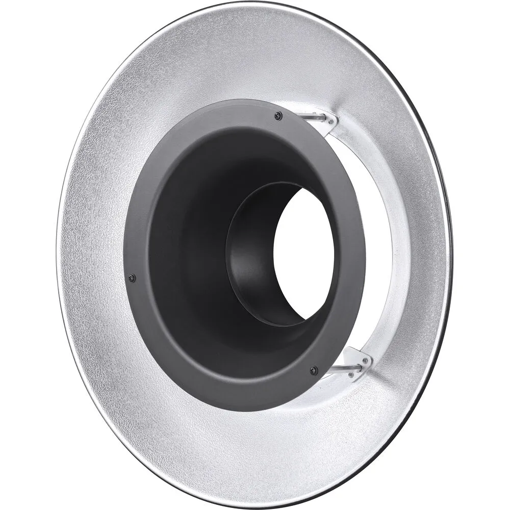 Рефлектор Godox RFT-25S разработан специально для установки на импульсной кольцевой голове Godox R200, соединенной с аккумуляторной вспышкой AD200 / AD200Pro. Модификатор света представляет собой портретную тарелку с серебристым отражающим покрытием и внутренним дефлектором.