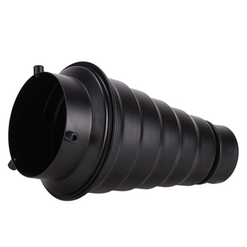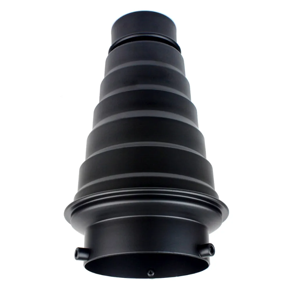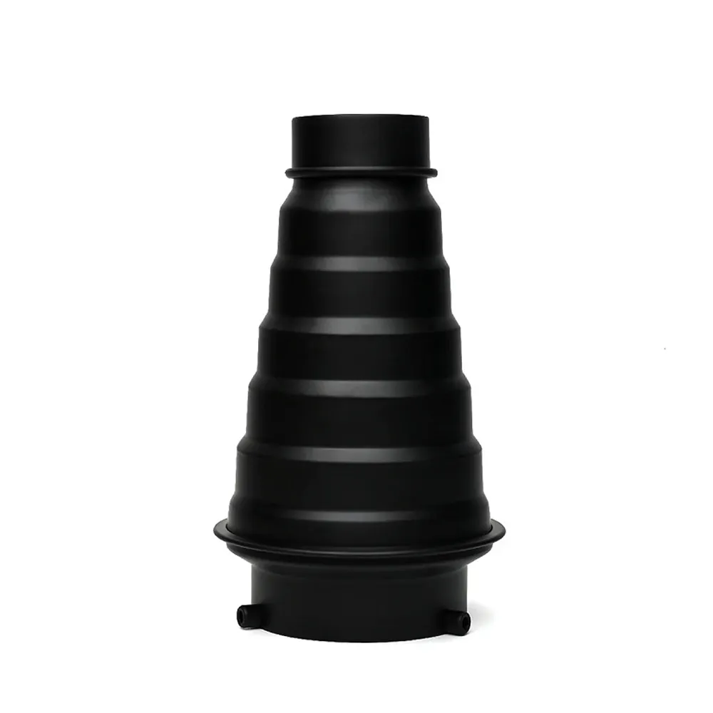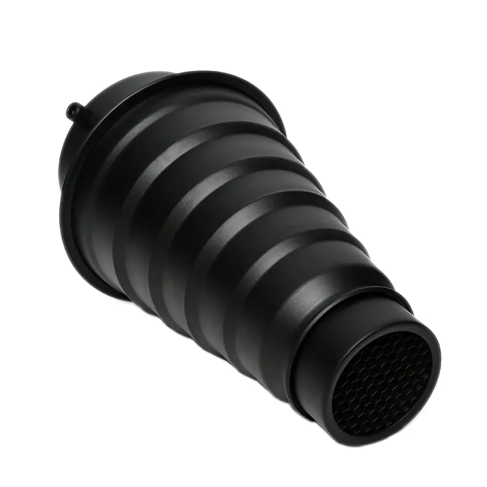Конусный рефлектор Godox длиной 230 мм изготовлен из металла и представляет собой тубус с сотами и байонетом Bowens. Диаметр выходного отверстия - 60 мм, диаметр на выходе 98 мм. Конусный рефлектор позволяет получать узконаправленный луч света для создания светового или цветового акцента на объекте съемки или фоне, повышает уровень возможностей в моделировании света и контроля над ним во время студийной съемки.