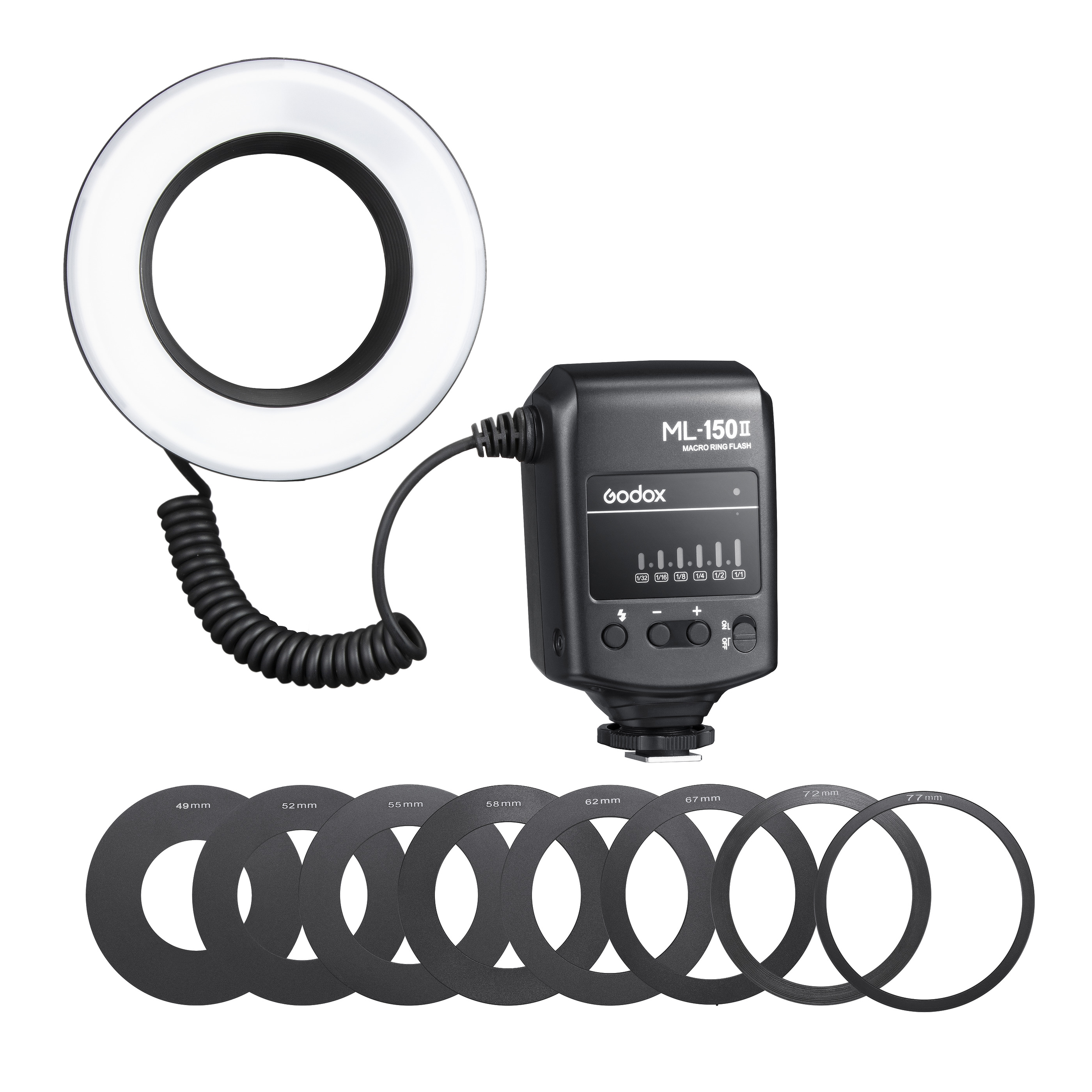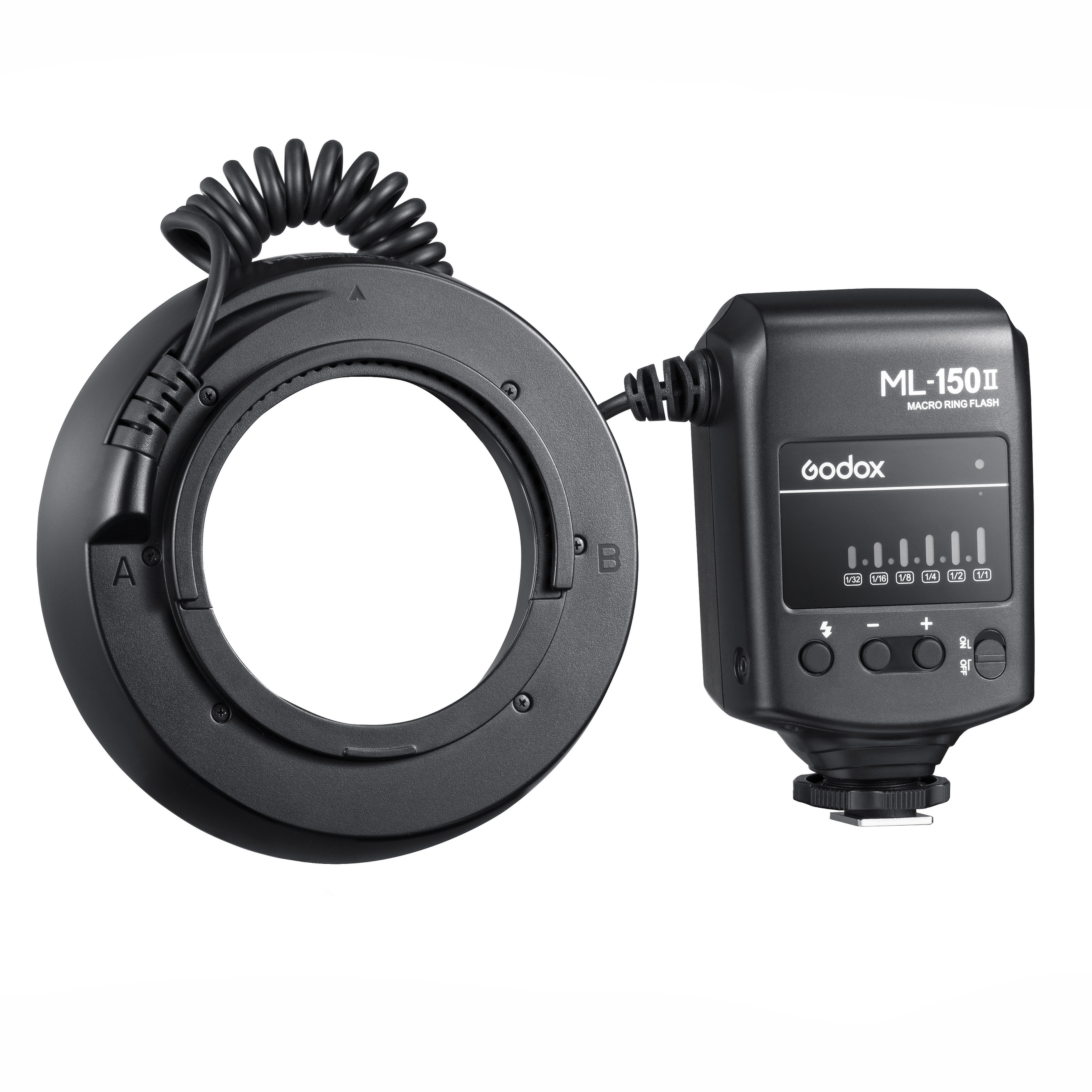 Кольцевая вспышка Godox ML-150II – простое и удобное устройство для художетвенной макросъемки. Кольцевая макровспышка в компактном корпусе, состоит из двух компонентов: контроллера, который вставляется в крепление «горячий башмак» DLSR-камеры, и кольцевой вспышки, которая крепится к объективу.