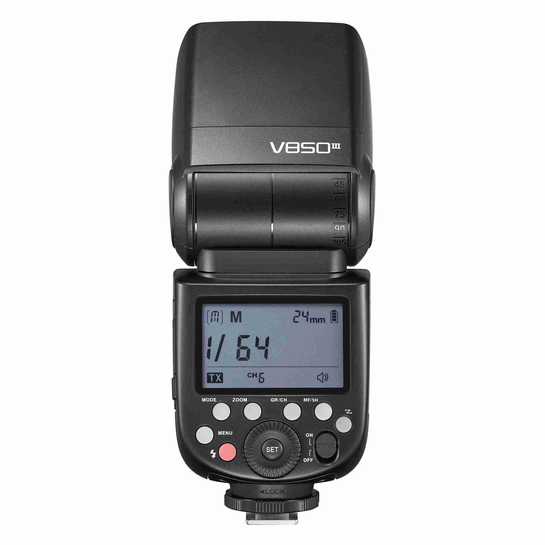 V850III – мануальная аккумуляторная накамерная вспышка Godox Ving со встроенной системой беспроводной синхронизации Godox X и специальными режимами для расширения творческих возможностей. Вспышка универсальна и может устанавливаться в крепление типа «горячий башмак», который находится на большинстве камер (Canon, Nikon, Sony, Fuji, Olympus, Panasonic, Pentax и т.д.). Накамерная вспышка Godox Ving V850III подойдет для создания необходимого освещения, как единственный источник импульсного света, и для работы в группе, в студии и на выездных съемках.