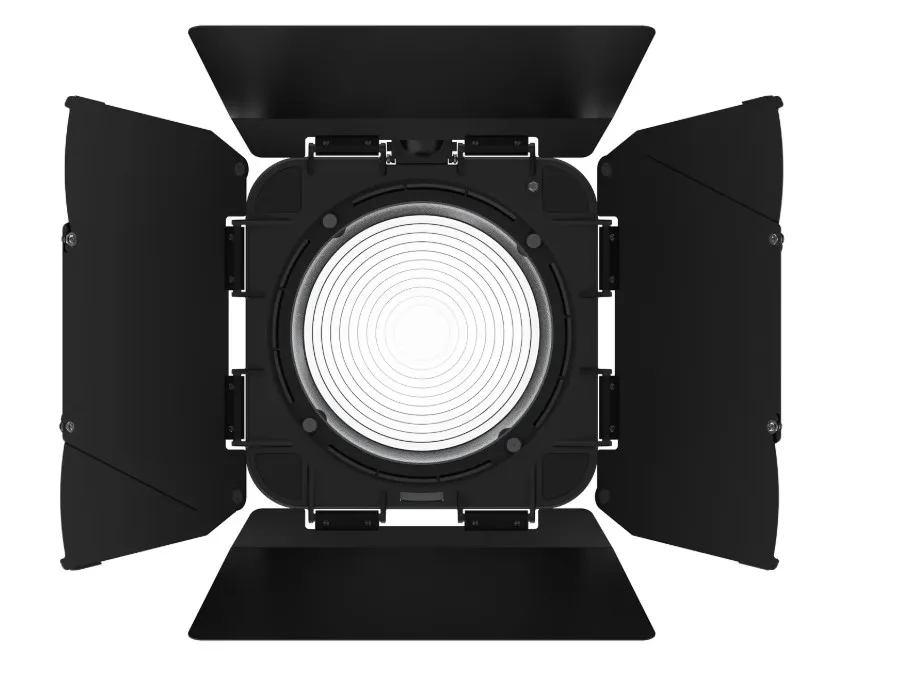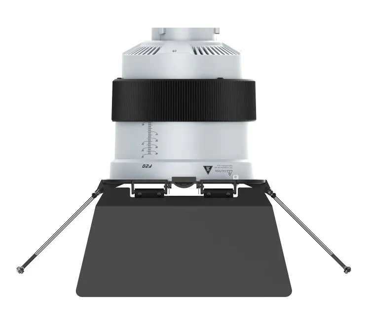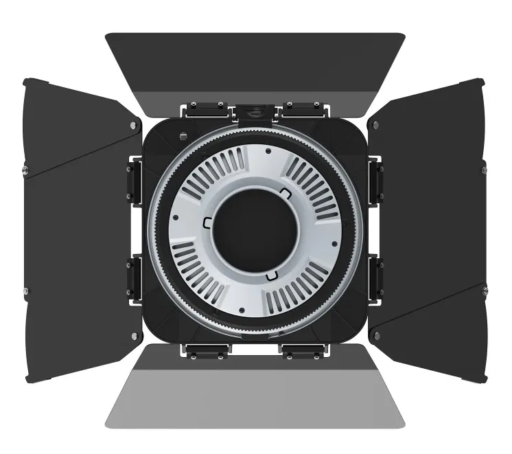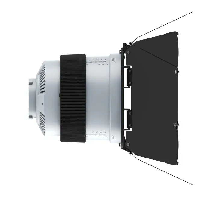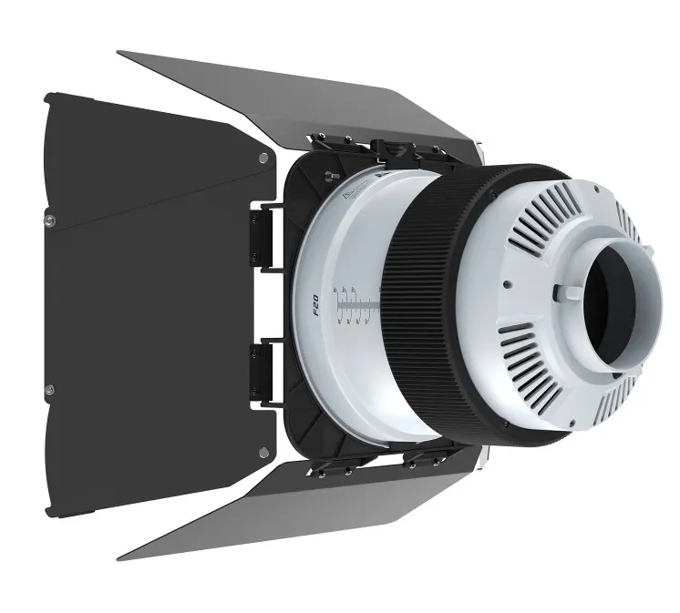 Угол фокусировки плавно регулируется от 10° до 45° с помощью задней ручки, объектив при этом остаётся неподвижным, а положение барндоров не сбивается. Четырёхлопастные барндоры легко снимаются и позволяют точно формировать границы света, вырезать блики, создавать акценты или моделировать объём персонажа без дополнительных аксессуаров.