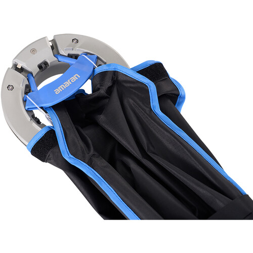 Компактная конструкция позволяет хранить и перевозить софтбокс в сложенном виде, что делает его отличным выбором для фотографов и креаторов, часто меняющих локацию или рабочую обстановку. Он совместим с COB-осветителями amaran и другими источниками света с креплением Bowens мощностью до 600 Вт. Установка занимает всего несколько секунд — достаточно потянуть за ручку блокировки. Компактный профиль делает софтбокс идеальным для студий с ограниченным пространством.