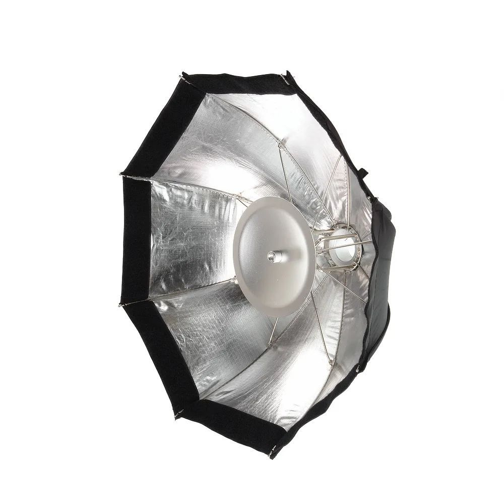 Портативный восьмиугольный софтбокс открывается и складывается как зонт. Создает мягкое и ровное освещение, а также красивые блики в глазах. Возможно использование с сотовым фильтром.В комплект включены 3 светомодификатора: белый тканевый рассеиватель (крепится по периметру на ленте-липучке), сотовая решетка-грид (крепится по периметру на ленте-липучке), серебристый диск.Возможна их комбинированная установка.