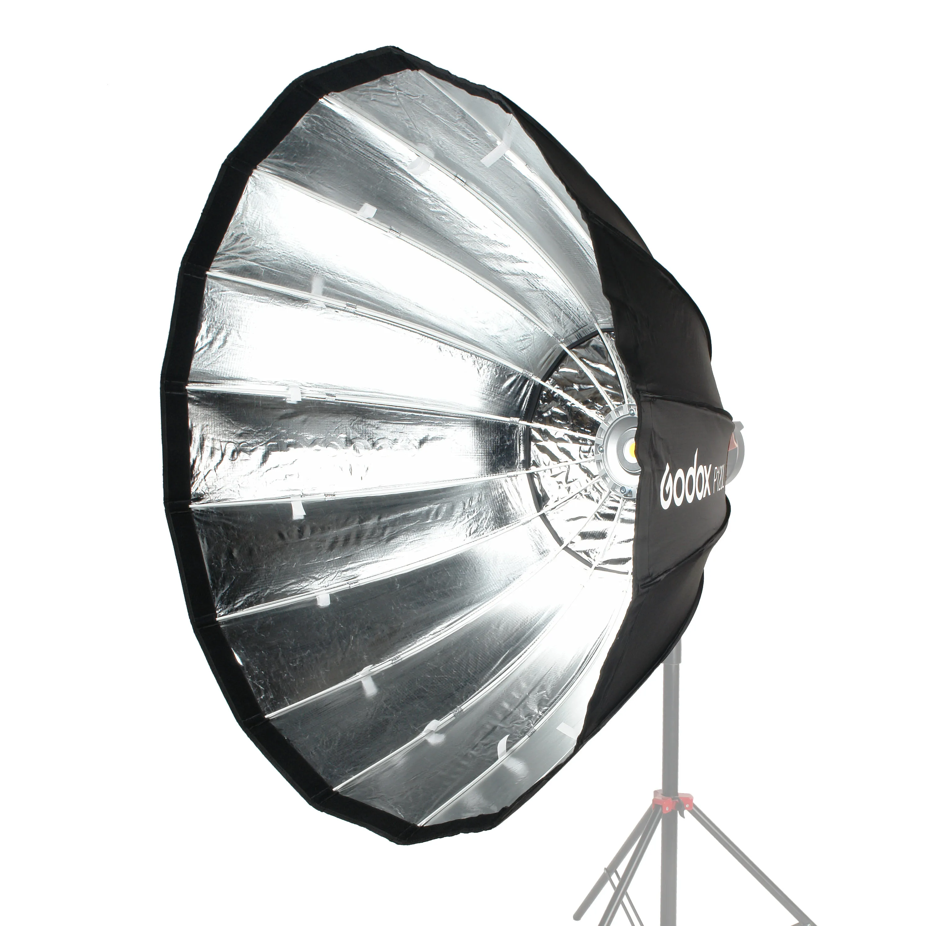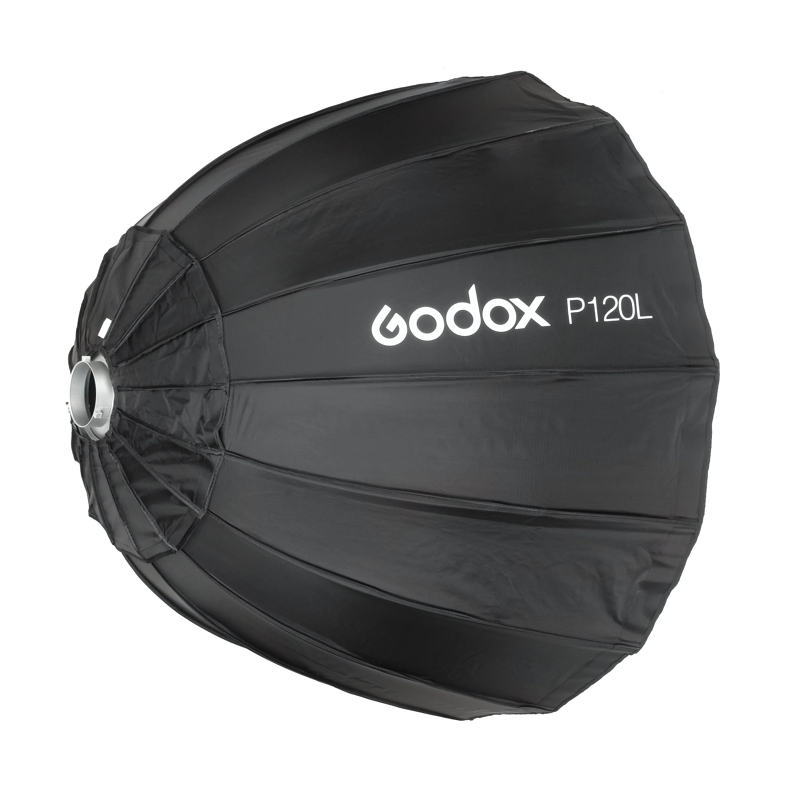 Софтбокс Godox P120L – глубокий параболический 16-секционный софтбокс с диаметром описывающей окружности 120 см, формирует мягкий сфокусированный световой поток. Объект съемки, предмет или человек приобретет объем и детализацию, а на глянцевых поверхностях или в глазах модели отразится оригинальный почти круглый блик. Софтбокс подойдет для использования на студийных вспышках и осветителях, которые используются как заполняющий или моделирующий источник света.