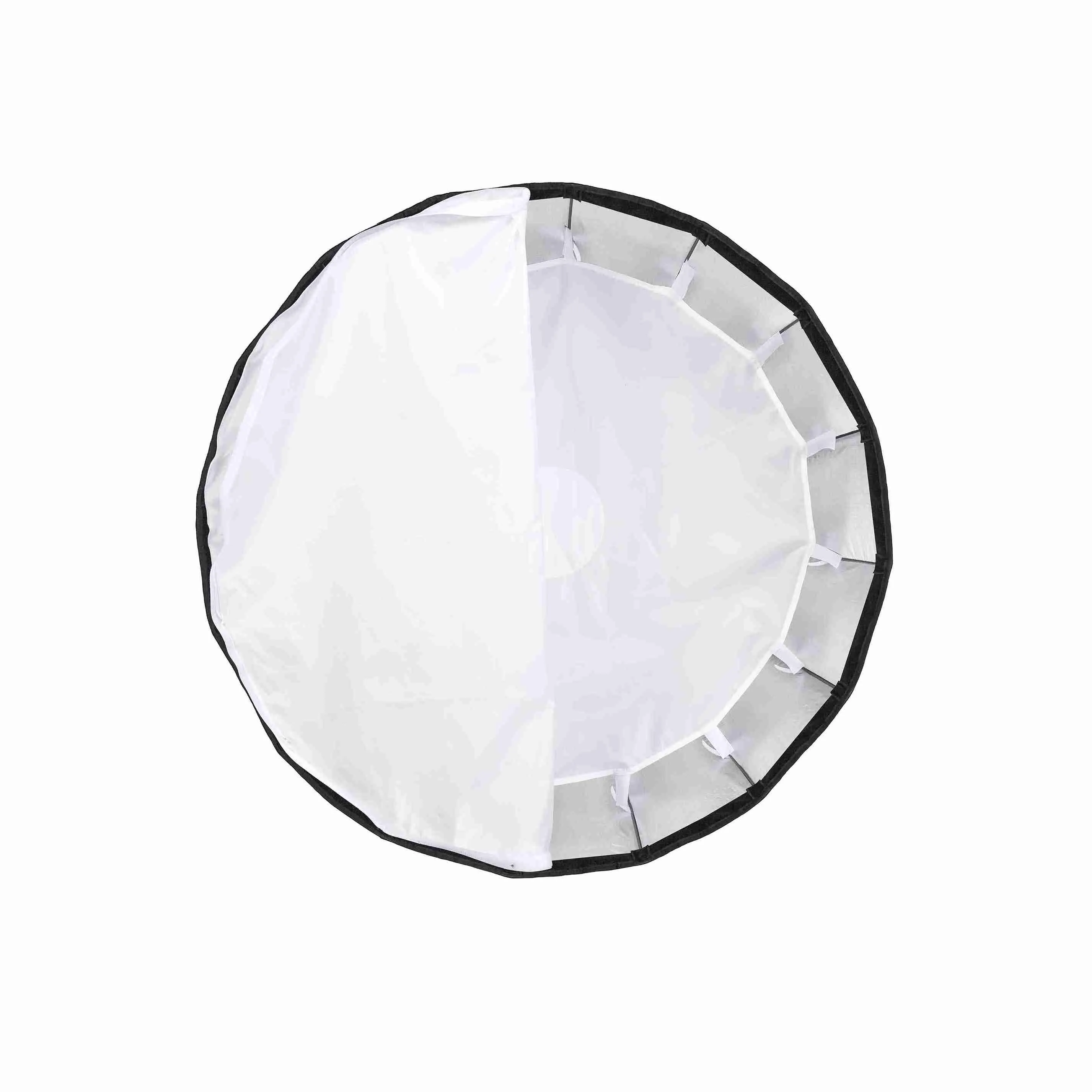 Godox QR-P70 – быстроскладной параболический 16-секционный софтбокс с диаметром описывающей окружности 70 см и глубиной 50 см. Софтбокс может использоваться совместно с импульсными вспышками и светодиодными осветителями с байонетом Bowens, чтобы формировать мягкий равномерный световой поток с четким ровным краем светового пятна. Такое освещение придает объем и детализацию объекту съемки, а почти круглая форма насадки может добавить оригинальный блик в глазах или на блестящей поверхности. Благодаря быстроскладной конструкции, Godox QR-P подойдёт фотографам и видеографам, часто работающим на выезде или в небольших студиях, где нет возможности хранить громоздкое оборудование.