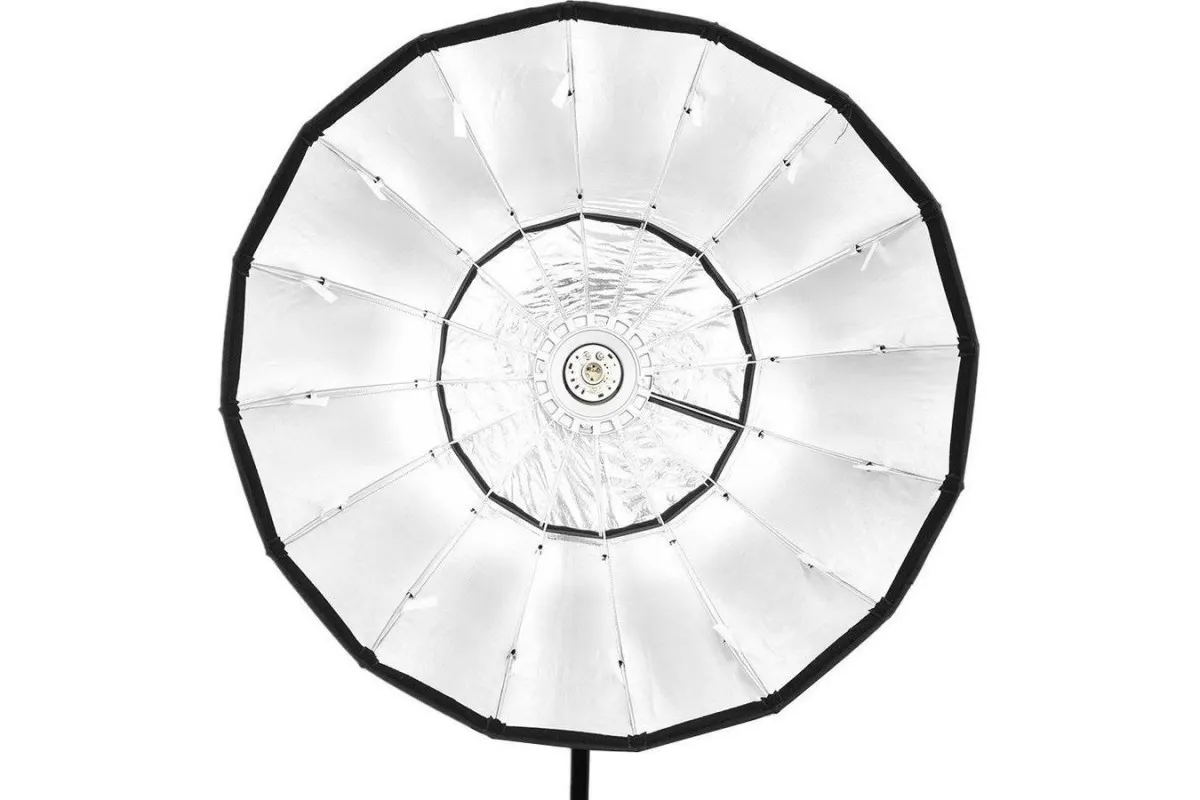 Форма рефлектора обеспечивает идеально ровный световой поток. Закрытая конструкция исключает ненужные блики и потери светового потока. Отражающая серебристая поверхность обеспечивает равномерное распределение света внутри софтбокса, белые полупрозрачные рассеиватели делают свет более мягким. Конструкция выполнена из прочных и в то же время легких материалов, что обеспечивает удобство установки оборудования и позволяет работать даже при сильном ветре.