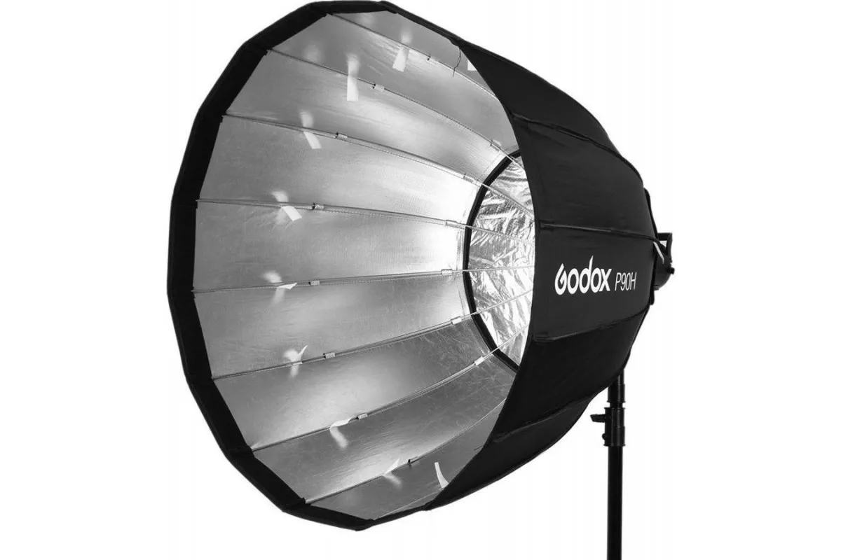 Парабокс Godox P90H диаметром 90 см позволяет получить мягкий светотеневой рисунок на снимаемом объекте. Предназначен для использования на студийных вспышках в качестве заполняющего, а так же моделирующего источников света. Парабокс жаропрочный - подходит для мощных вспышек. Благодаря байонетному соединению Bowens, софтбокс крепится на студийные осветители. В сложенном виде имеет компактные размеры — удобен для транспортировки. Сборка конструкции проста и не требует много времени.