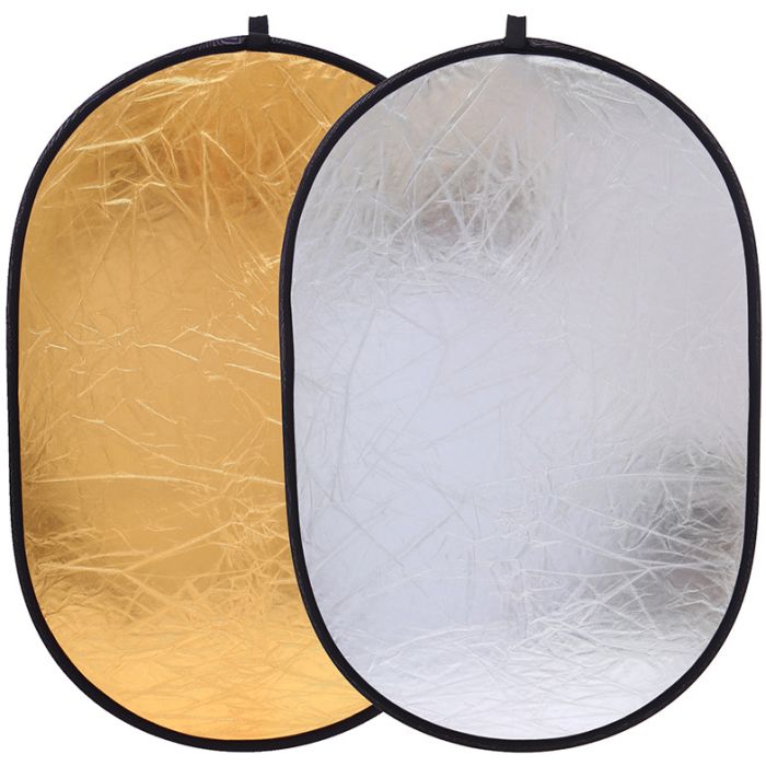 -Gold (золотистый) — понижает цветовую температуру (3800ºK) отражаемого света, позволяет добиться «теплого» оттенка, что часто необходимо при съемке портрета. При использовании золотистой отражающей поверхности интенсивность отраженного света снижается незначительно.