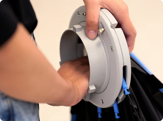 Благодаря механизму быстрой установки "одним щелчком", он раскрывается мгновенно простым движением ручки спидринга, исключая сложности сборки и разборки. Компактный складной дизайн делает его удобным для хранения и транспортировки, что идеально подходит как для студийной съемки, так и для работы на выезде, где ограничены пространство и время.