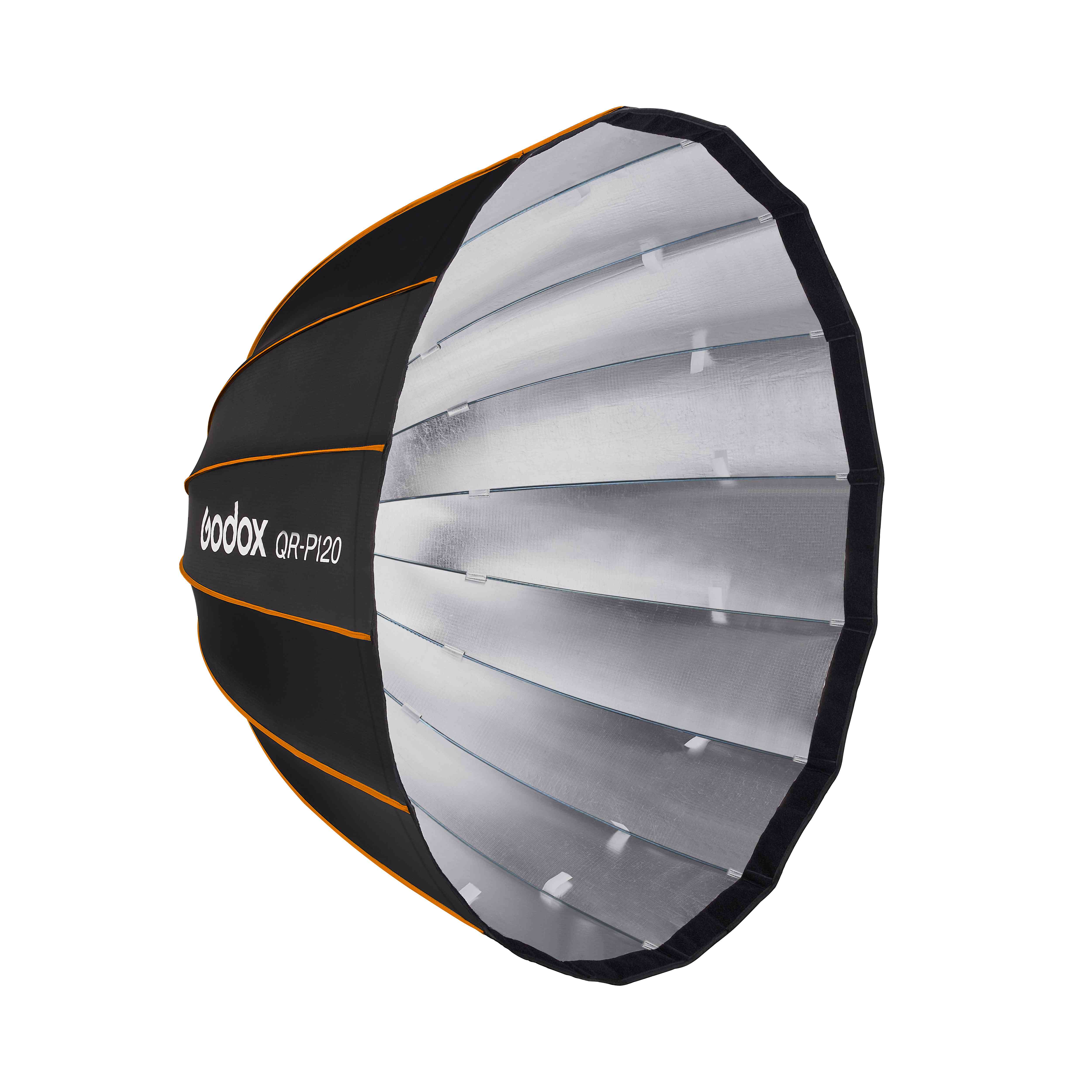 Godox QR-P120 – быстроскладной параболический 16-секционный софтбокс с диаметром описывающей окружности 120 см и глубиной 70 см. Софтбокс может использоваться совместно с импульсными вспышками и светодиодными осветителями с байонетом Bowens, чтобы формировать мягкий равномерный световой поток с четким ровным краем светового пятна. Такое освещение придает объем и детализацию объекту съемки, а почти круглая форма насадки может добавить оригинальный блик в глазах или на блестящей поверхности. Благодаря быстроскладной конструкции, Godox QR-P подойдёт фотографам и видеографам, часто работающим на выезде или в небольших студиях, где нет возможности хранить громоздкое оборудование.