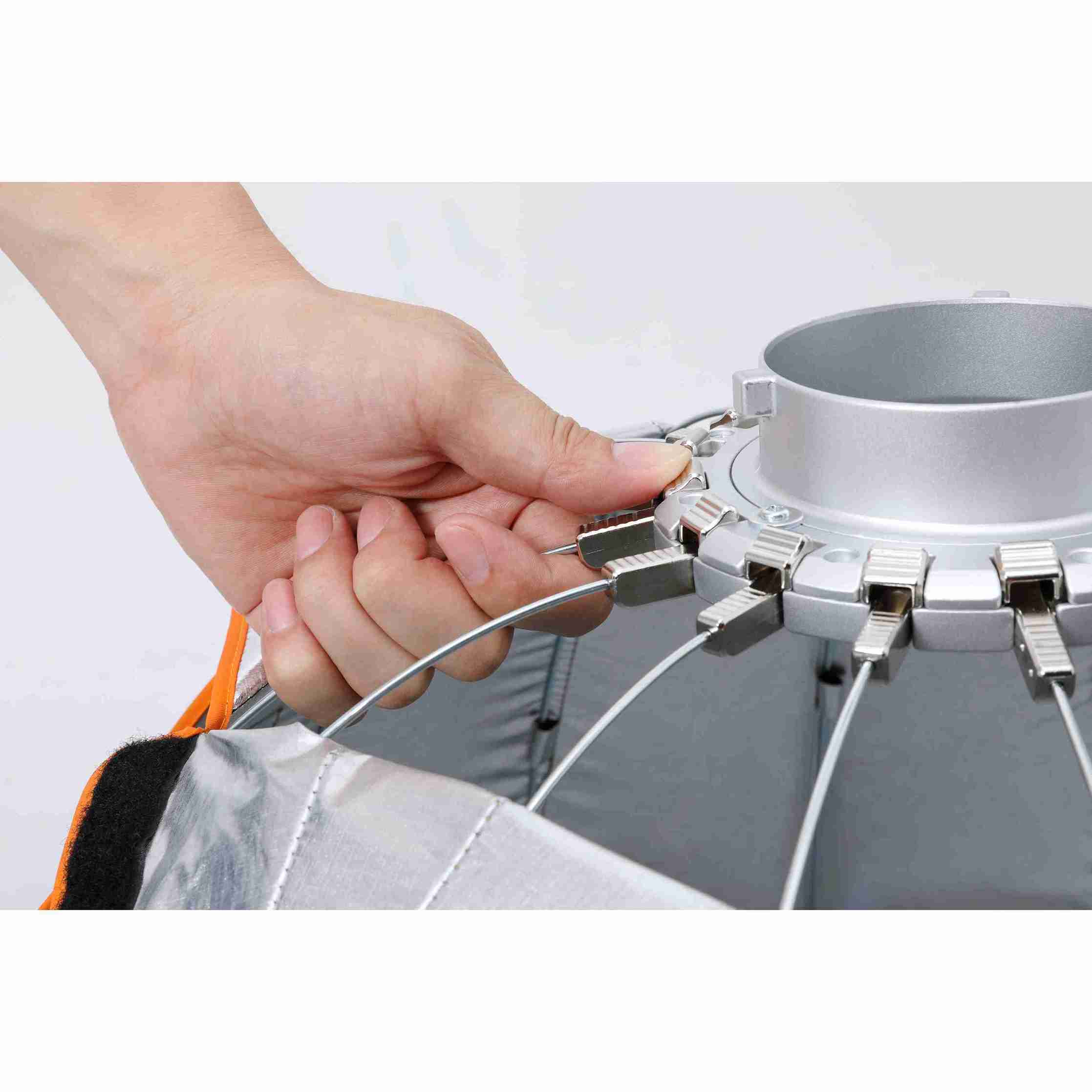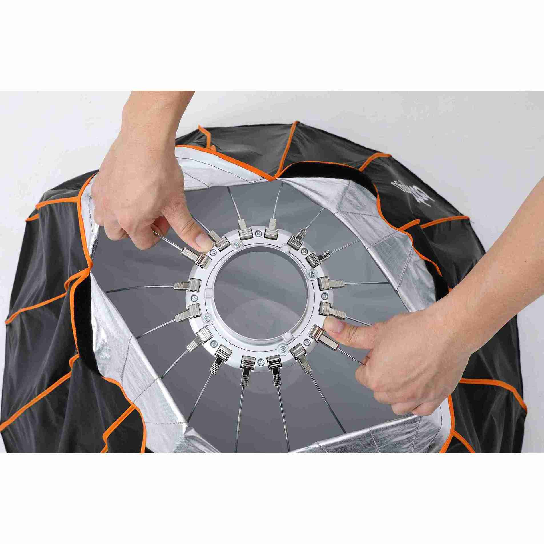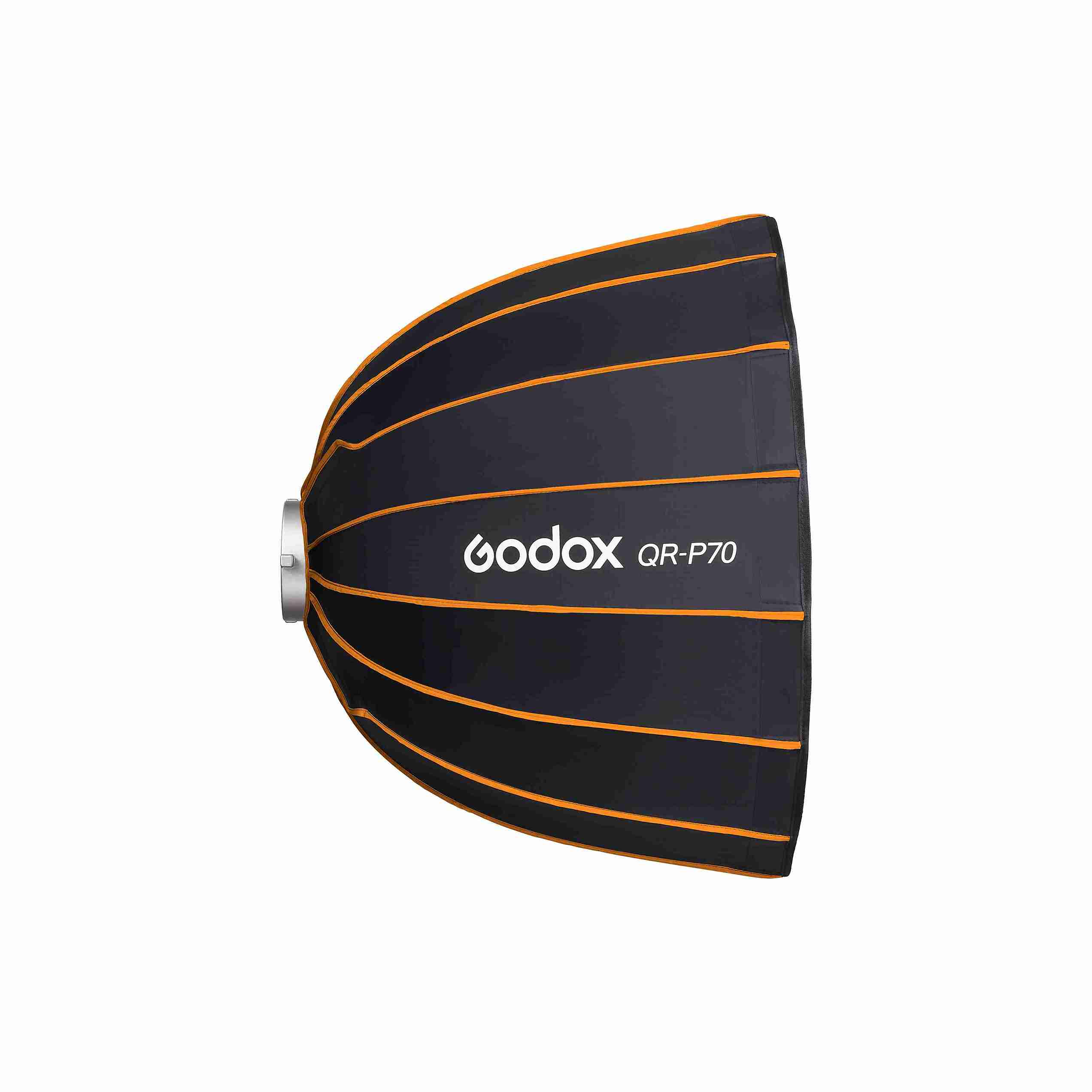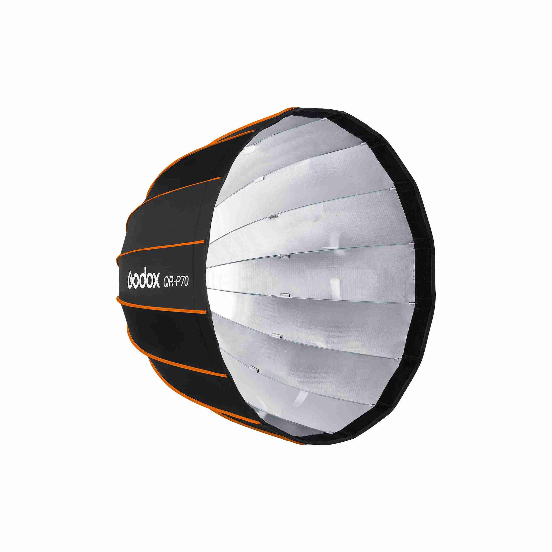 Godox QR-P70 – быстроскладной параболический 16-секционный софтбокс с диаметром описывающей окружности 70 см и глубиной 50 см. Софтбокс может использоваться совместно с импульсными вспышками и светодиодными осветителями с байонетом Bowens, чтобы формировать мягкий равномерный световой поток с четким ровным краем светового пятна. Такое освещение придает объем и детализацию объекту съемки, а почти круглая форма насадки может добавить оригинальный блик в глазах или на блестящей поверхности. Благодаря быстроскладной конструкции, Godox QR-P подойдёт фотографам и видеографам, часто работающим на выезде или в небольших студиях, где нет возможности хранить громоздкое оборудование.
