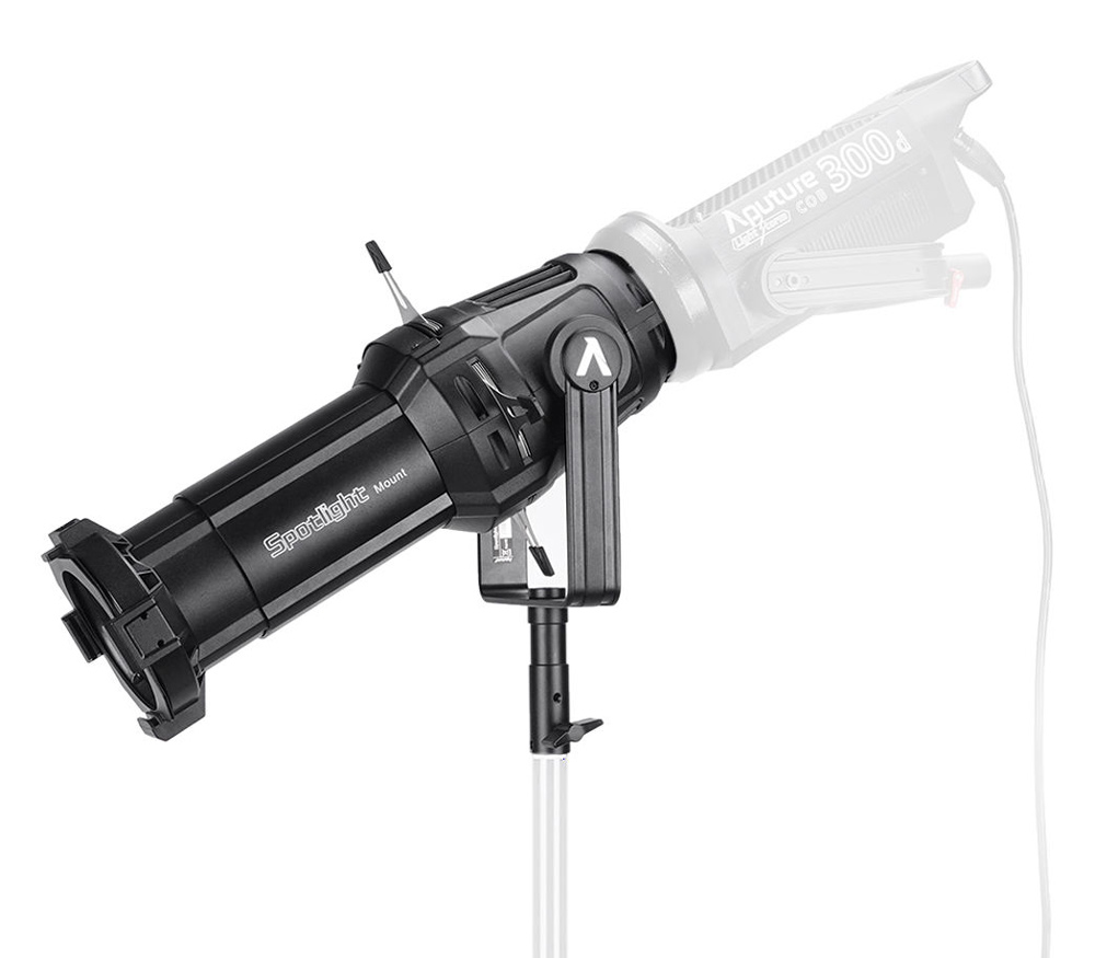 - Продвинутая оптическая система: Aputure Spotlight имеет удобную систему фокусировки и настройки угла, при этом система линз позволила свести аберрации к минимуму, окантовка краев составит всего 1 миллиметр на расстоянии в 5 метров.