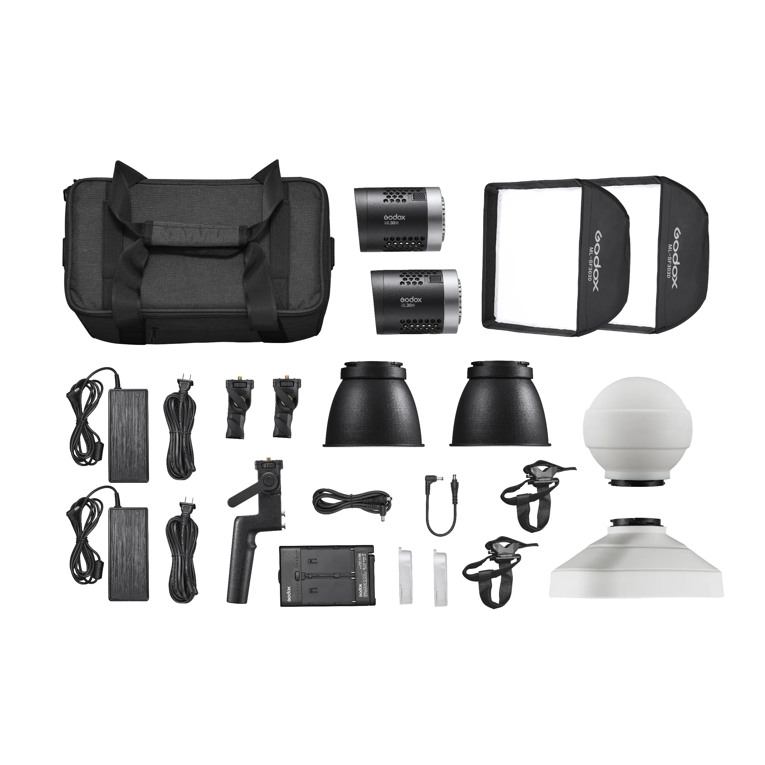 Базовый комплект Godox ML30Bi-K2 KitT из двух светодиодных источников постоянного биколорного света серии ML и светомодифицирующих аксессуаров подойдет для создания сложных световых схем для коммерческой и художественной съемки.